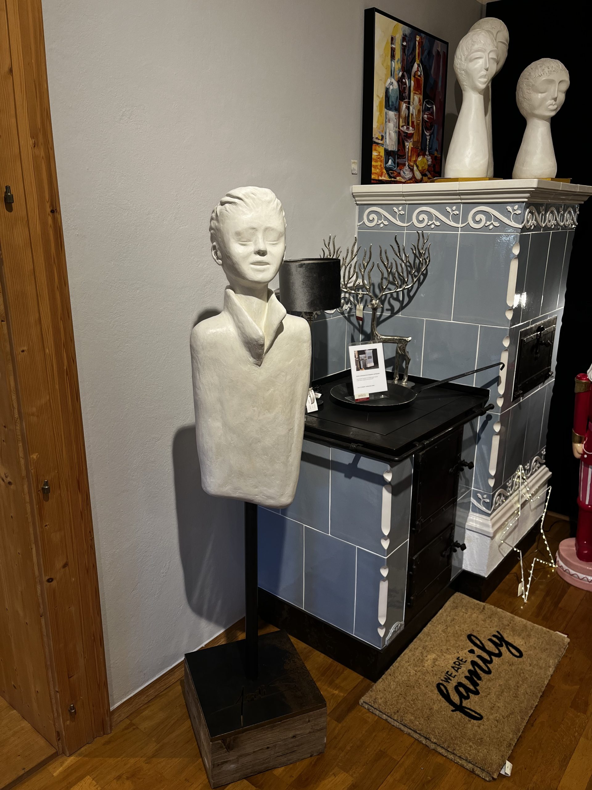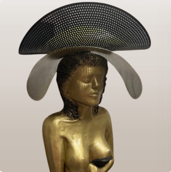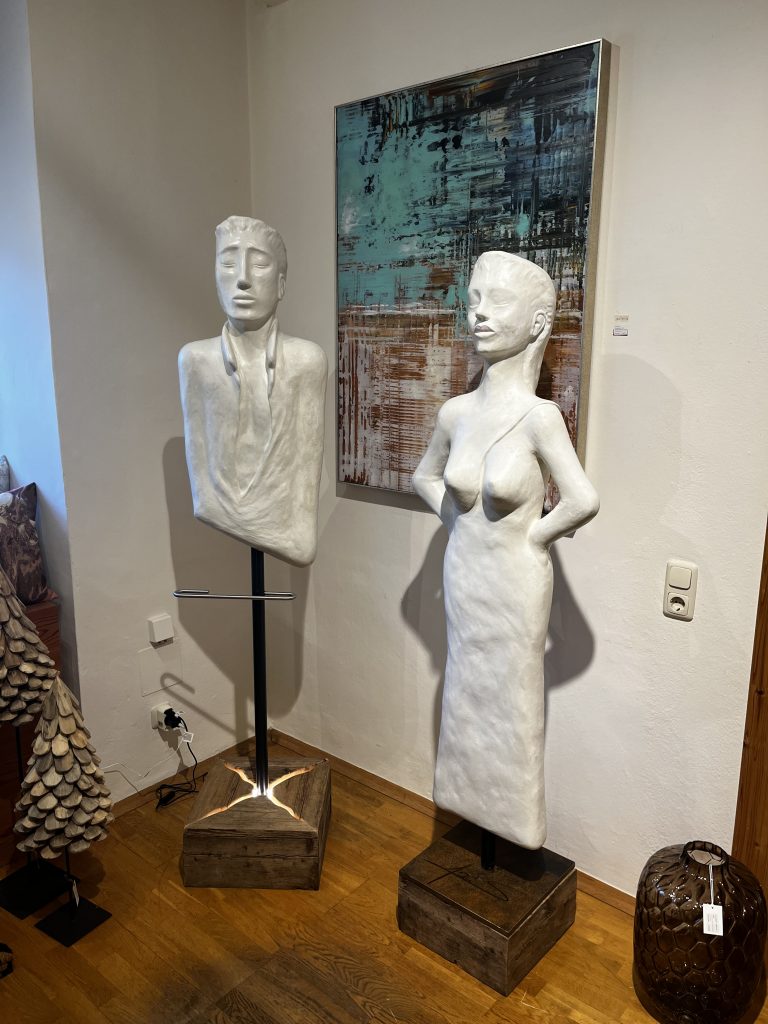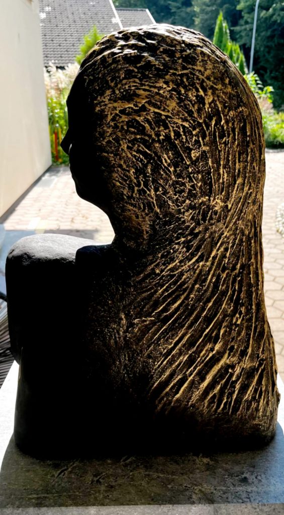 Il Servo Nobile –eine kraftvolle Männerbüste mit offenem Hemd, ruhiger Haltung und klarer Präsenz – ein stiller Begleiter mit starkem Charakter. La Signora Fiera – Die stolze Dame